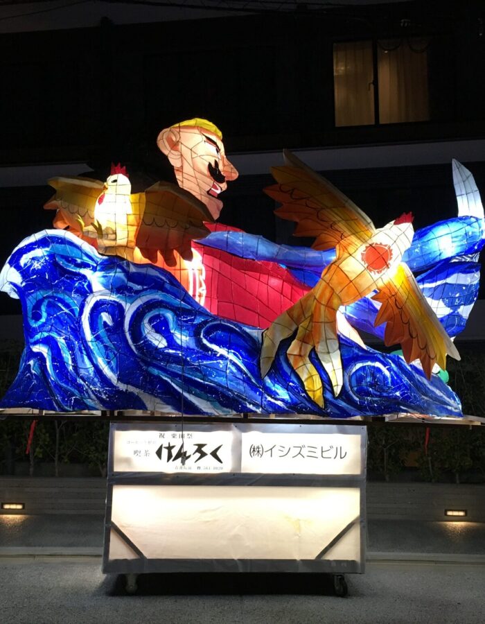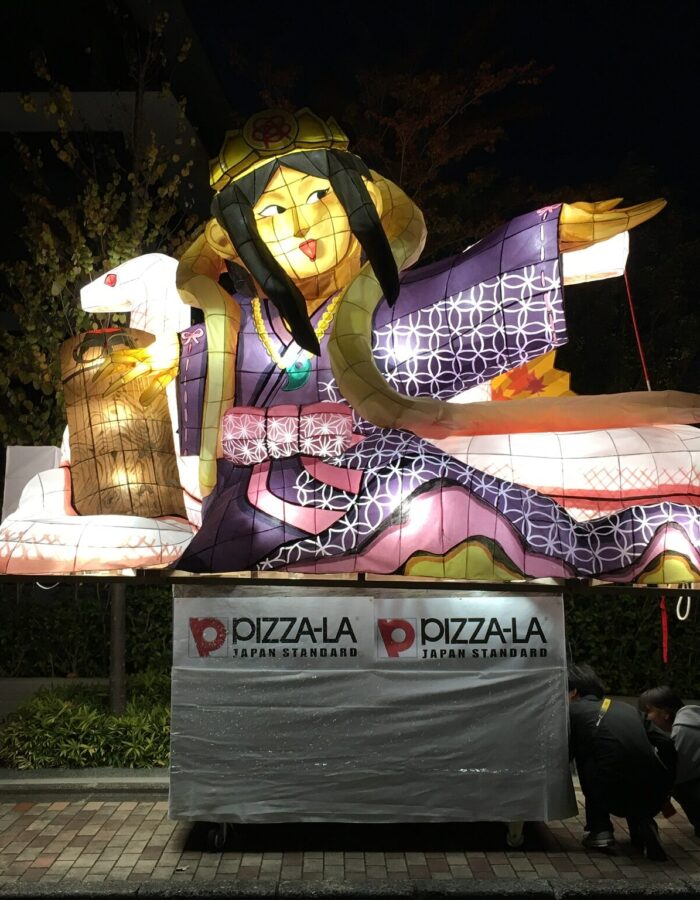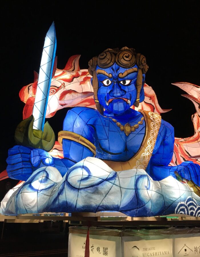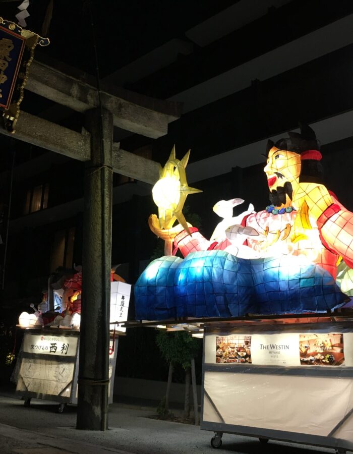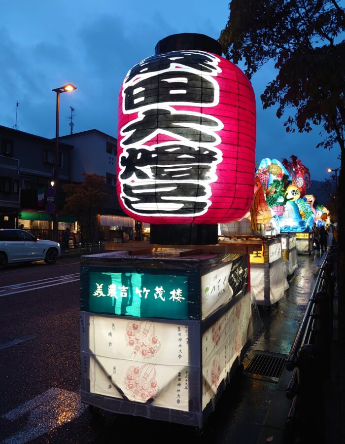 「粟田大燈呂(あわただいとうろ)」とは、毎年10月に行われる粟田神社(京都市東山区)最大の祭礼である「粟田祭」で巡行する、高さ4mにもなる大きな灯篭の山車です。青森ねぶたの源流とも言われています。大燈呂は粟田祭の1日目の御出祭(おいでまつり)・神賑行事(しんしんぎょうじ)にて粟田神社参道に展示され、2日目の「夜渡神事(よわたりしんじ)」で夜渡行列の一部として、鉾や松明、笛太鼓とともに粟田の夜を鮮やかに彩りながら氏子区域を巡行します。