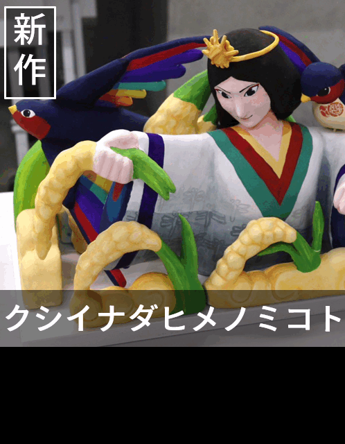 粟田神社の主祭神の一柱で、衣食住守護のご利益があるといわれている奇稲田比賣命(くしいなだひめのみこと)。神社の右座に祀られている。益鳥として大切にされてきたツバメと繁栄の象徴である稲を乗せており、粟田地域の人々の生活が災いから守られ、豊かであってほしいという思いが込められている。