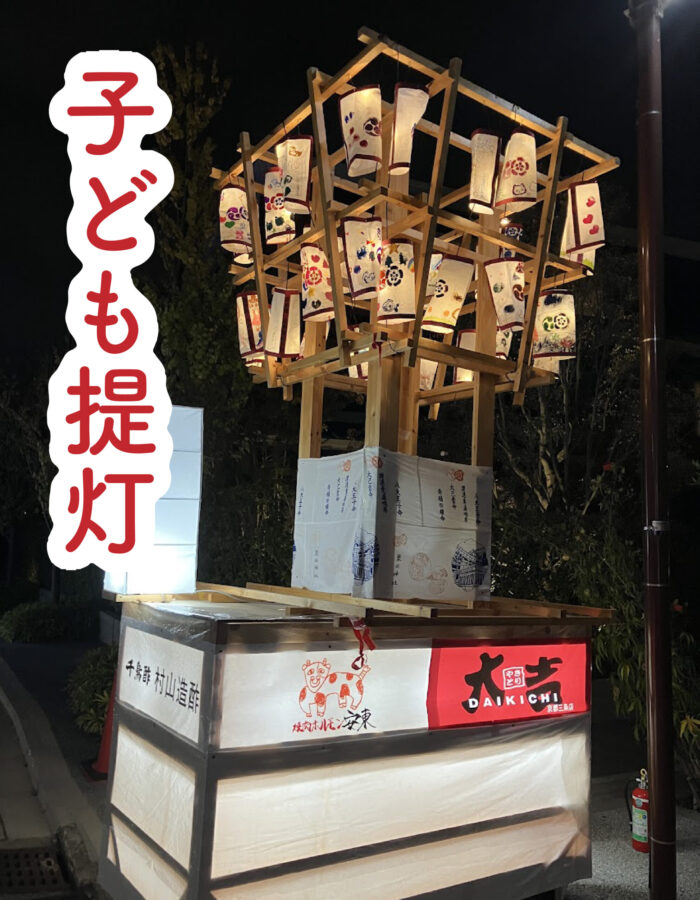 粟田祭1日目、粟田神社では粟田祭のはじまりの儀式として、神輿に御神霊をお遷しする御出祭が執り行われ、石見神楽や祇園囃子(平成女鉾清音会)などが奉納される神賑行事が斎行されます。境内には出店も並び、多くの人で賑わいます。粟田大燈呂は参道周辺にずらりと展示され、子ども提灯は境内へ続く坂に並び、粟田神社に足を運ぶ人々を出迎えます。