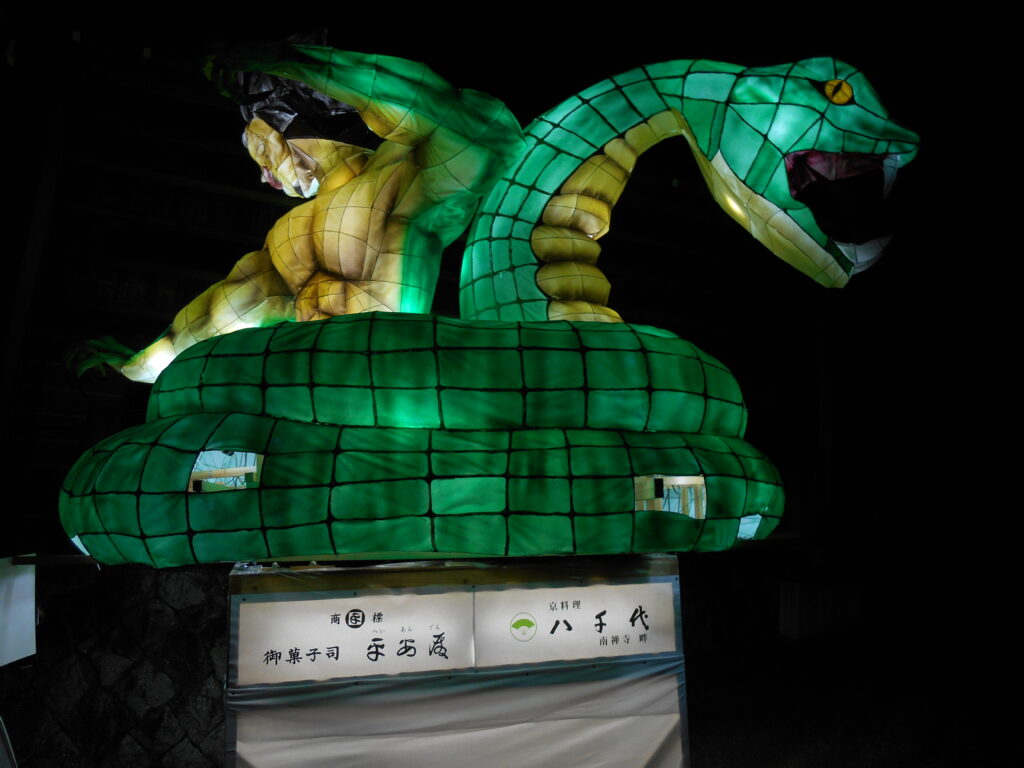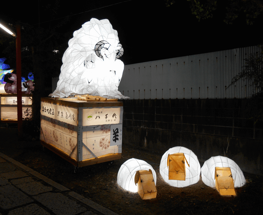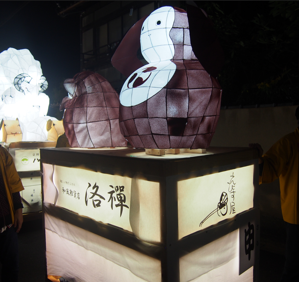 これまでに制作された粟田大燈呂をご紹介します。復活当初は5基であった大燈呂でしたが、10周年である2017年からは、先頭を切る真っ赤な「大提灯」と地域の子供たちが作った「子ども提灯」も加わり、現在では10基程度になりました。そのうち2,3基程度が学生たちの手により毎年新しく制作されます。大燈呂は粟田神社の主祭神や干支などがモチーフとなっており、学生たちが考案した作品がプレゼンテーションにて選抜されたのち、製作するものが決定します。来年はどんな大燈呂が登場するか、お楽しみに。