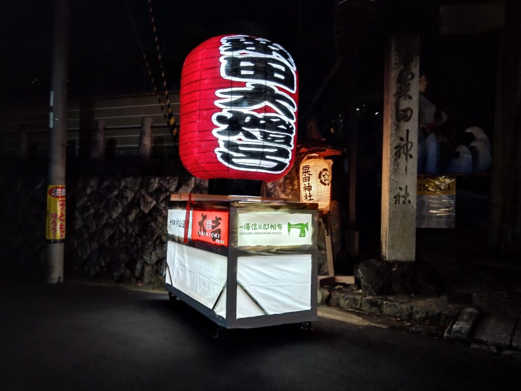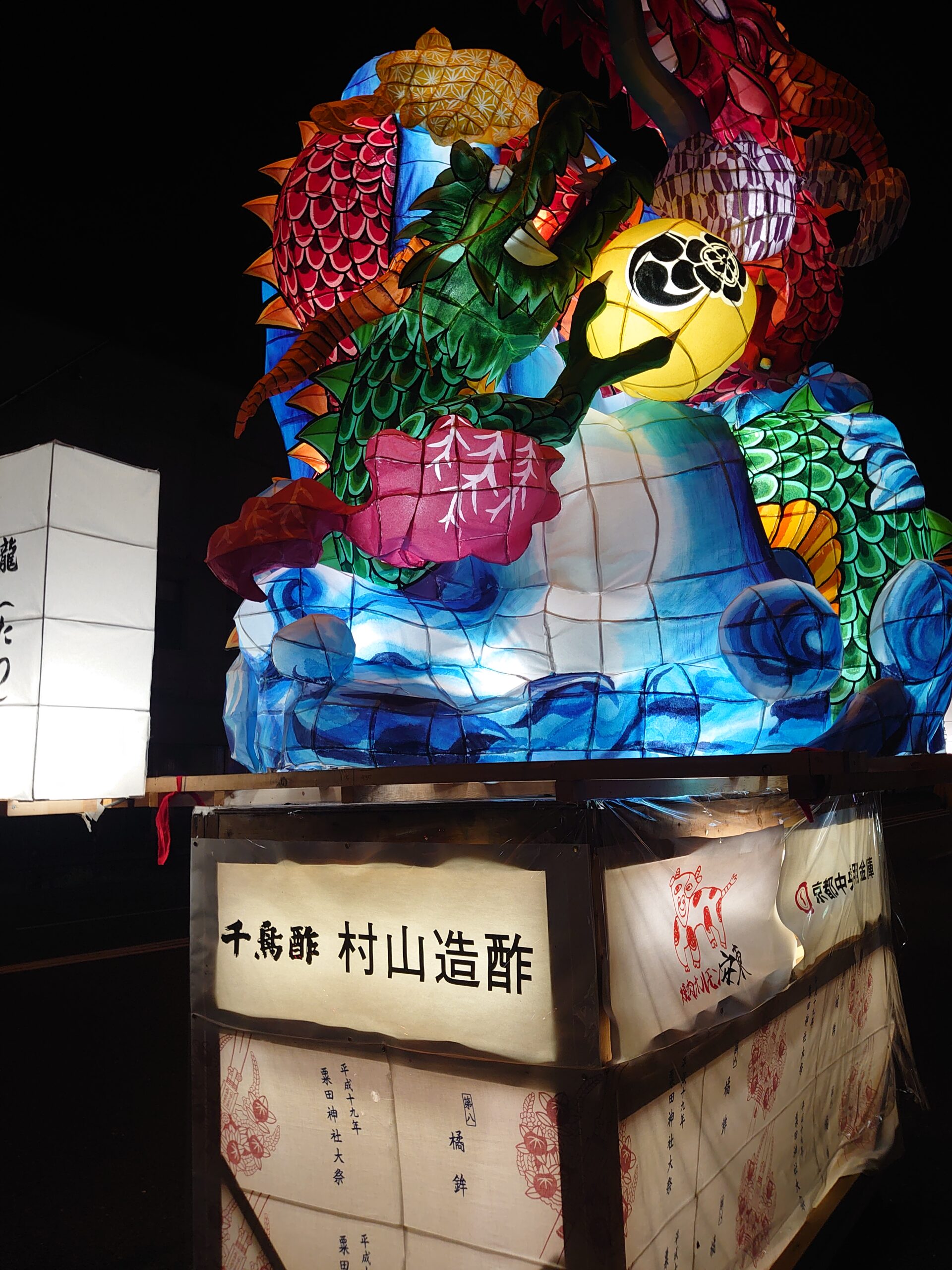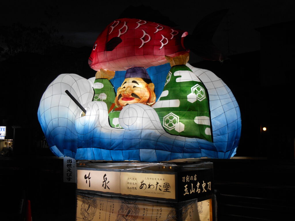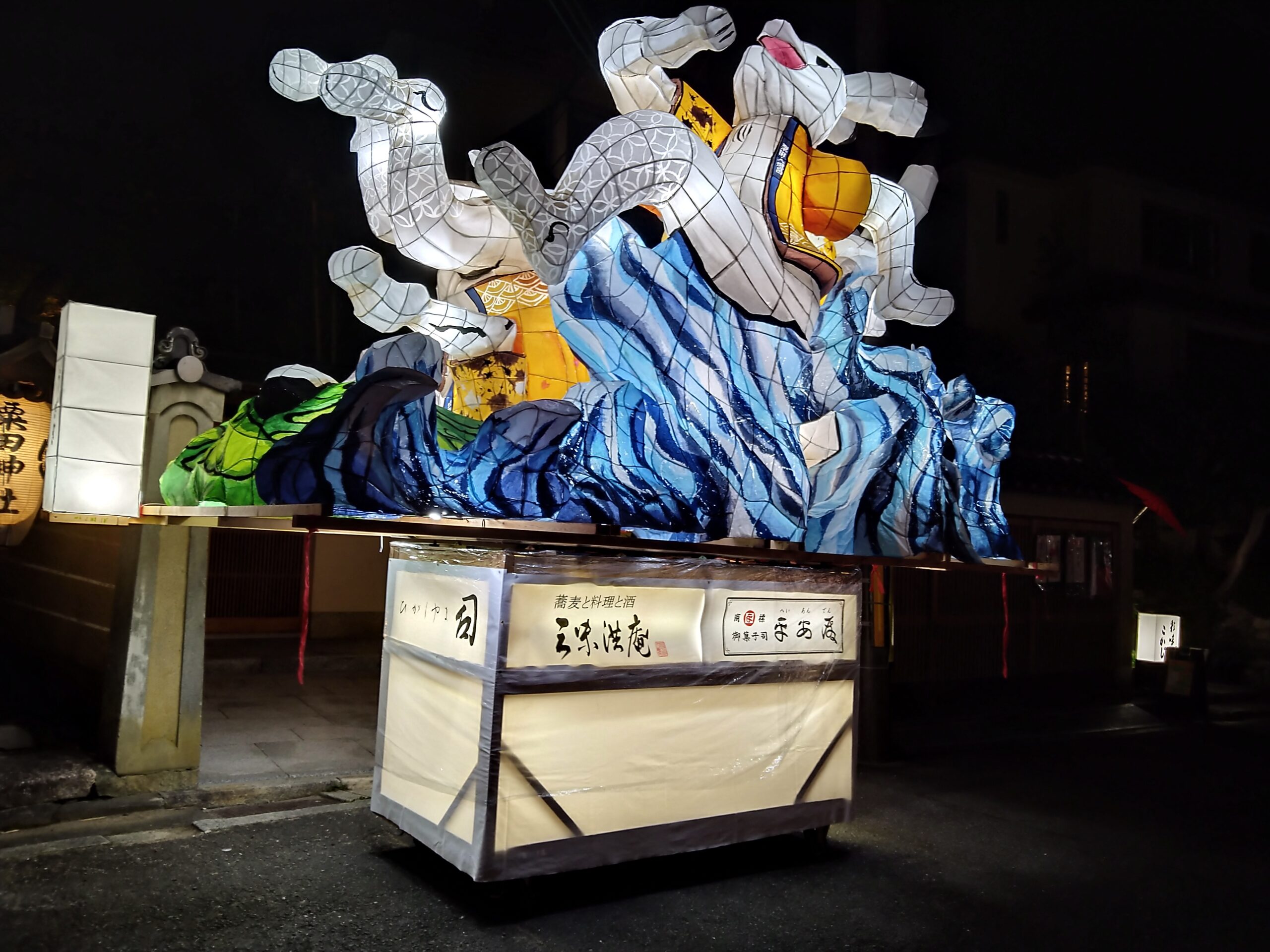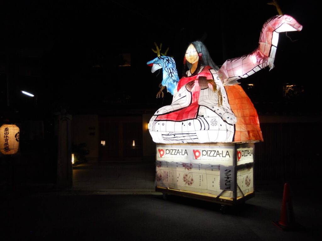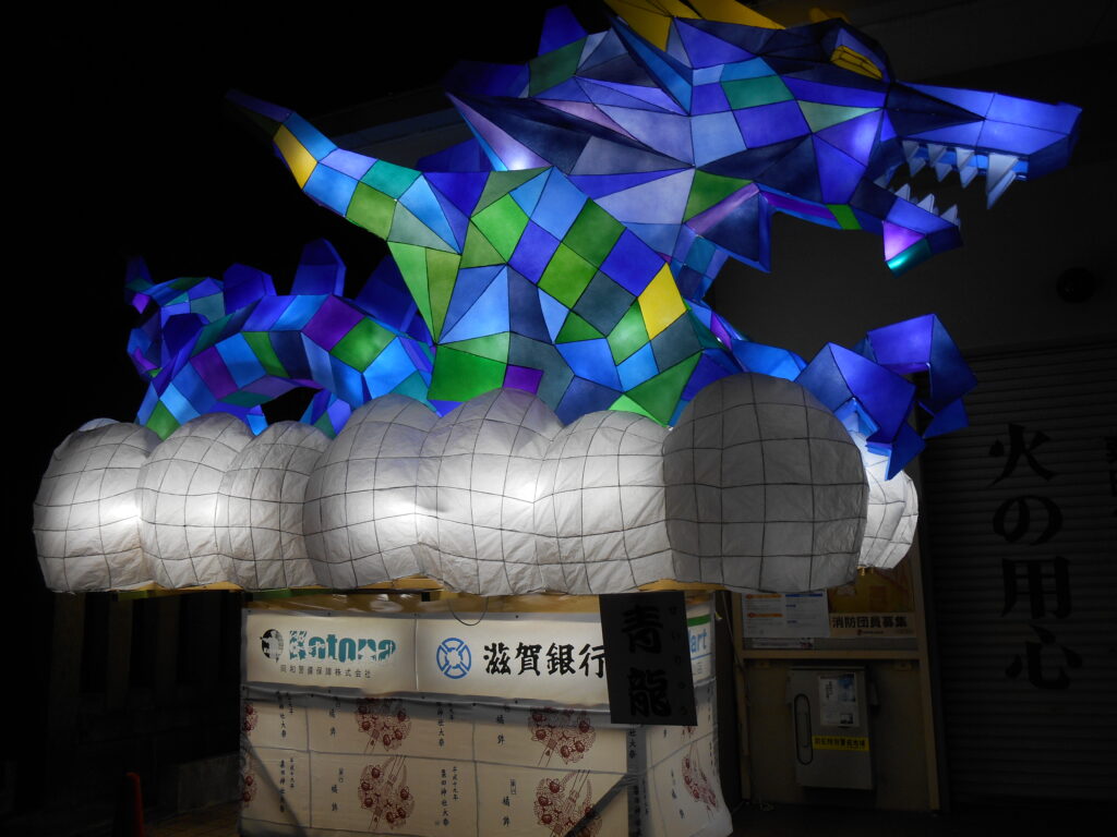 新型コロナウイルス感染症の流行のため、巡行は中止となりました。神楽殿に2基だけ飾りました。