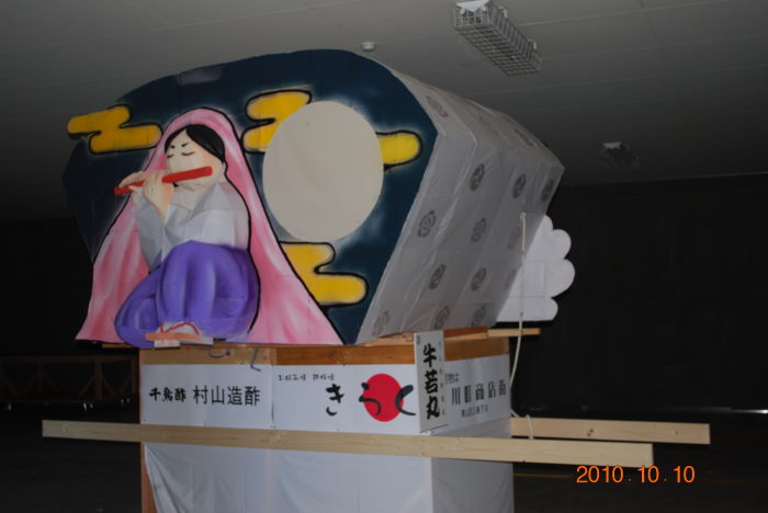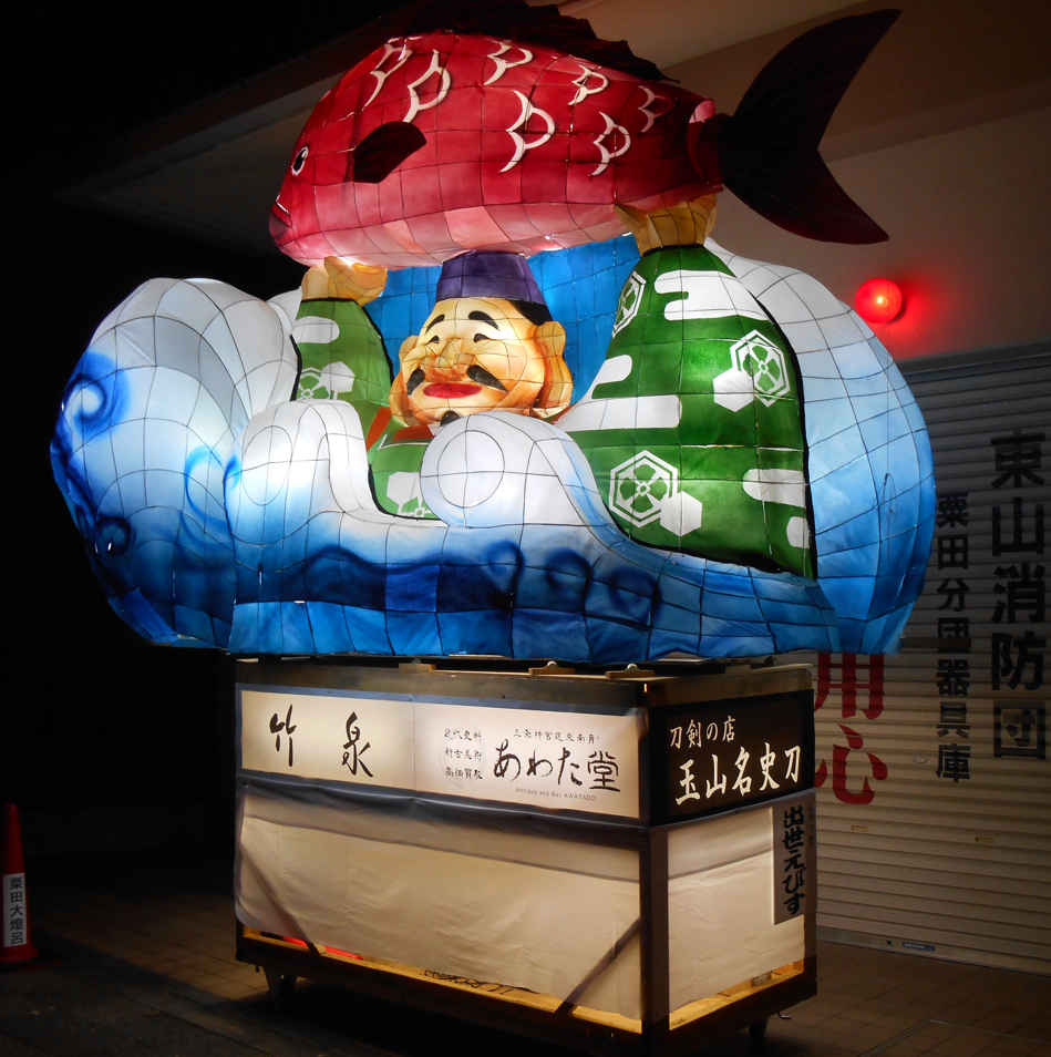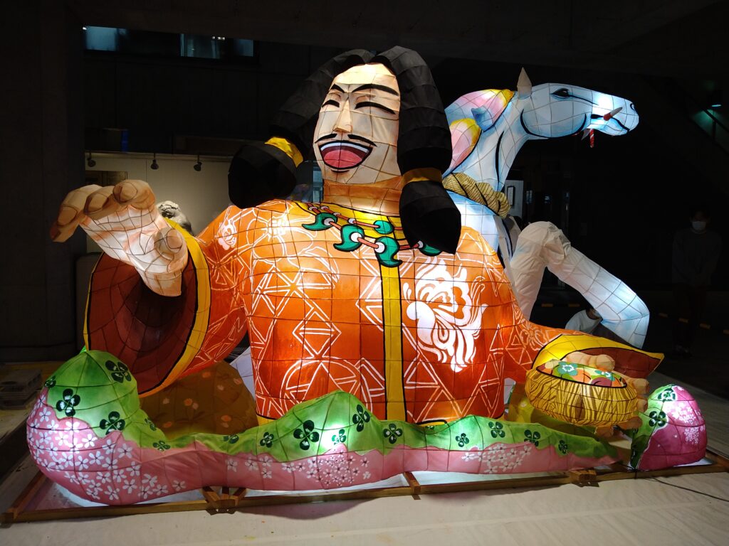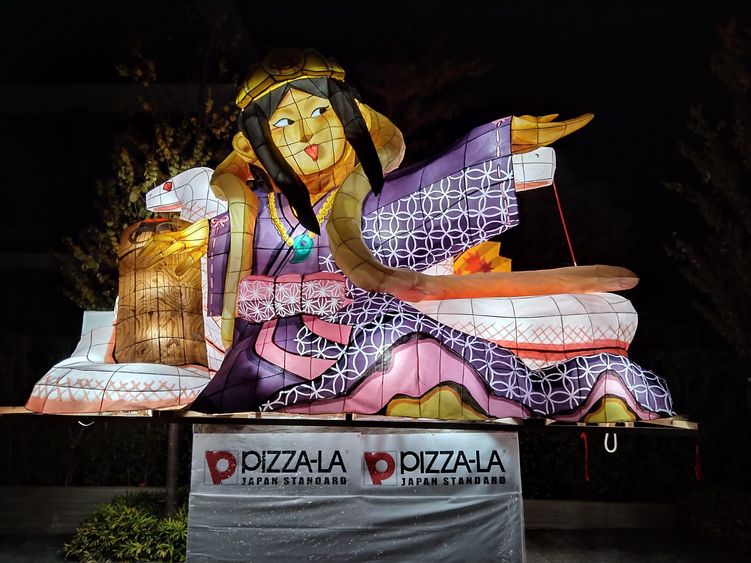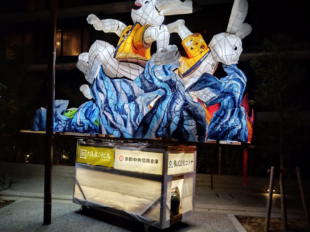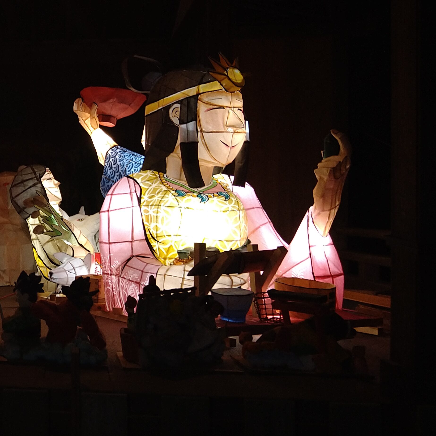 新型コロナウイルス感染症の流行のため、巡行は中止となりました。神楽殿に2基だけ飾りました。