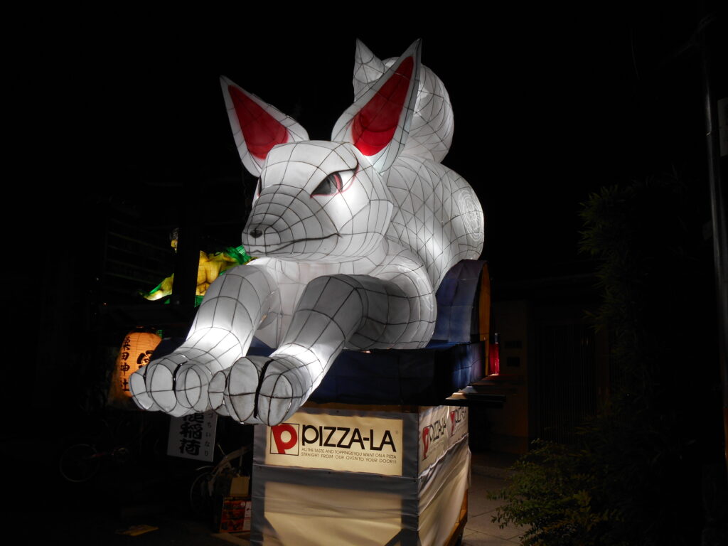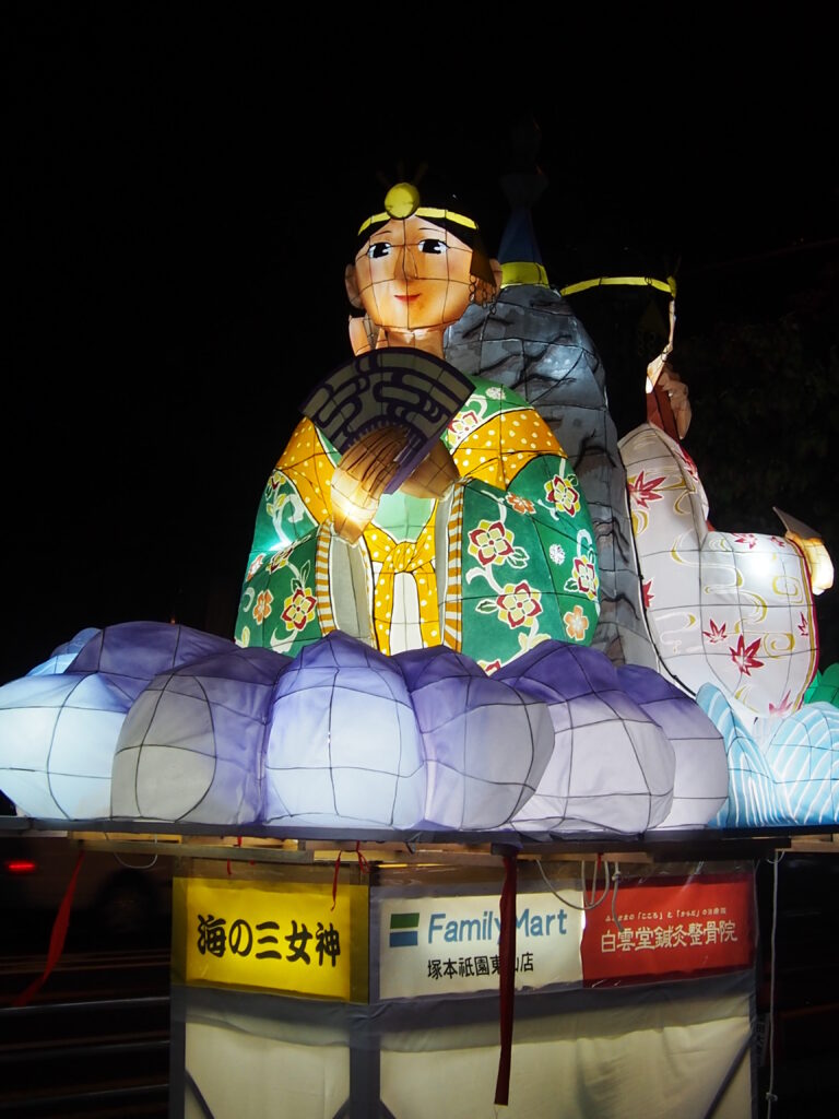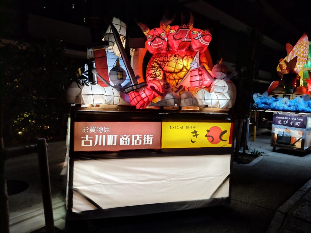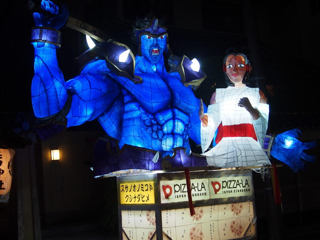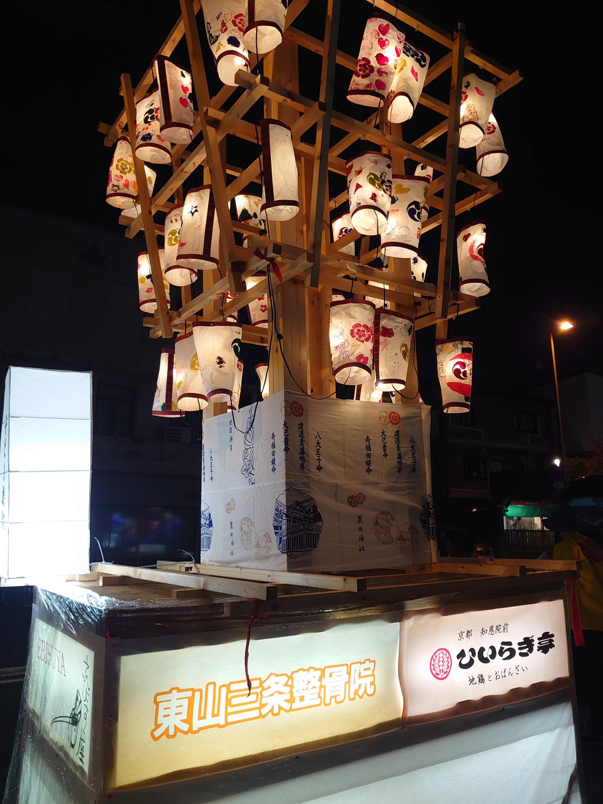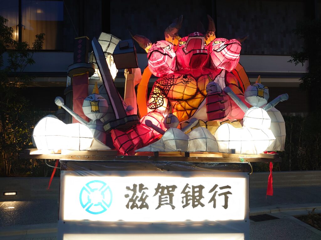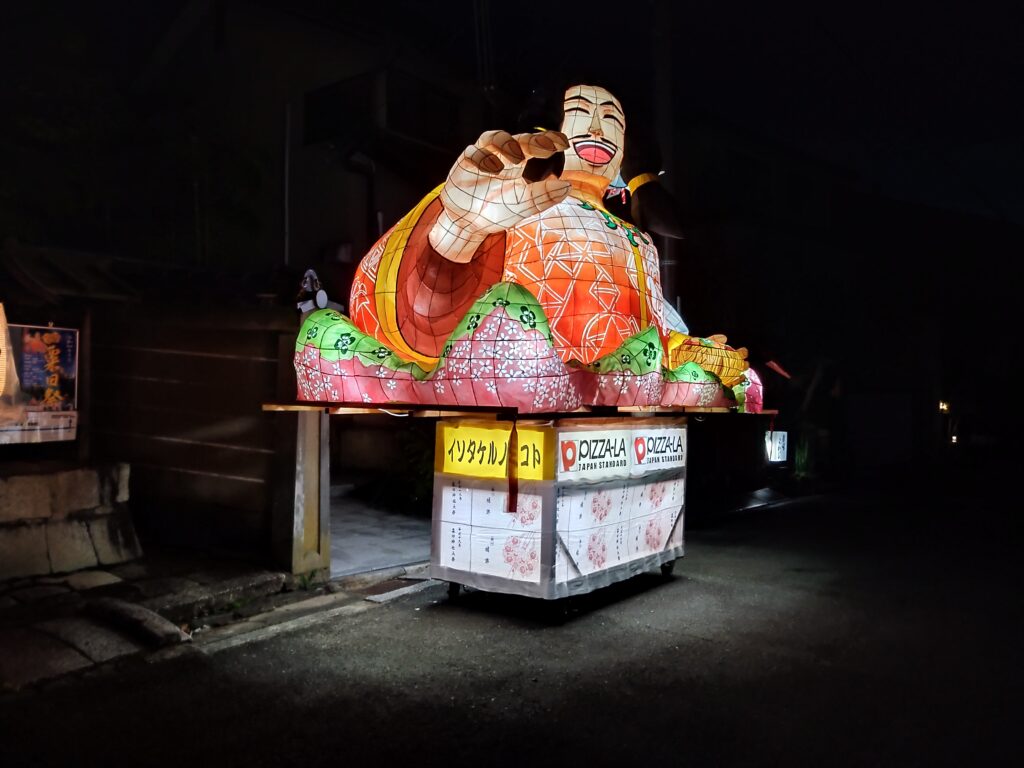 新型コロナウイルス感染症の流行のため、巡行は中止となりました。神楽殿に2基だけ飾りました。