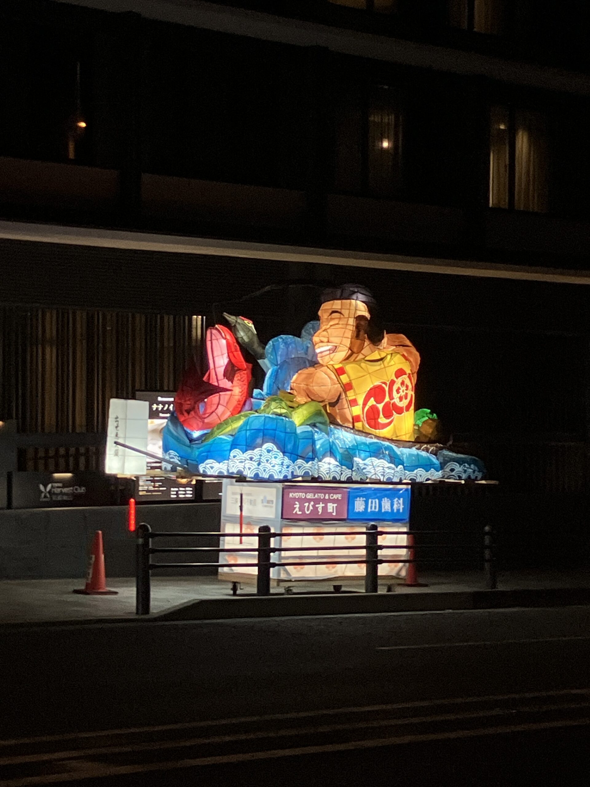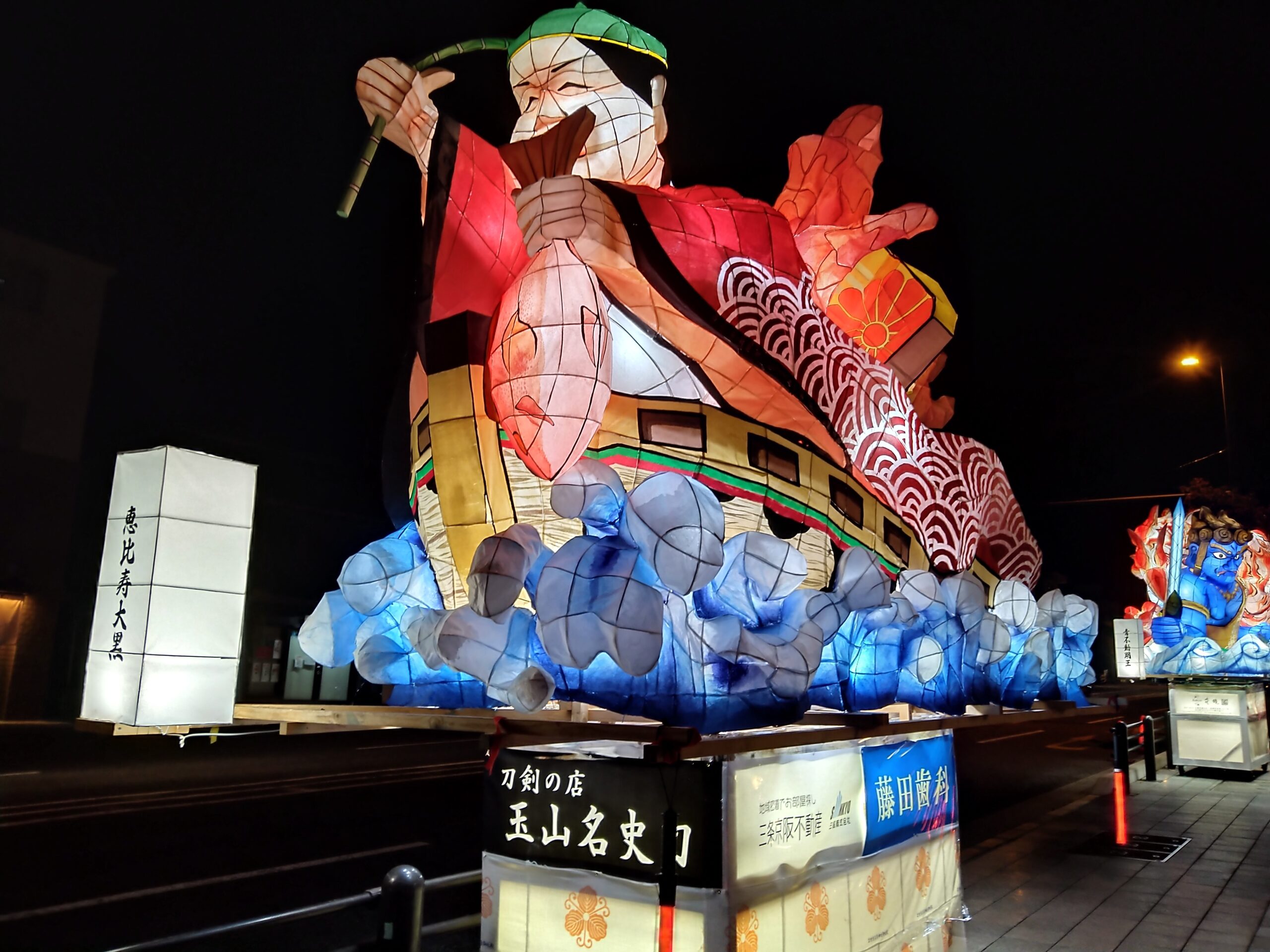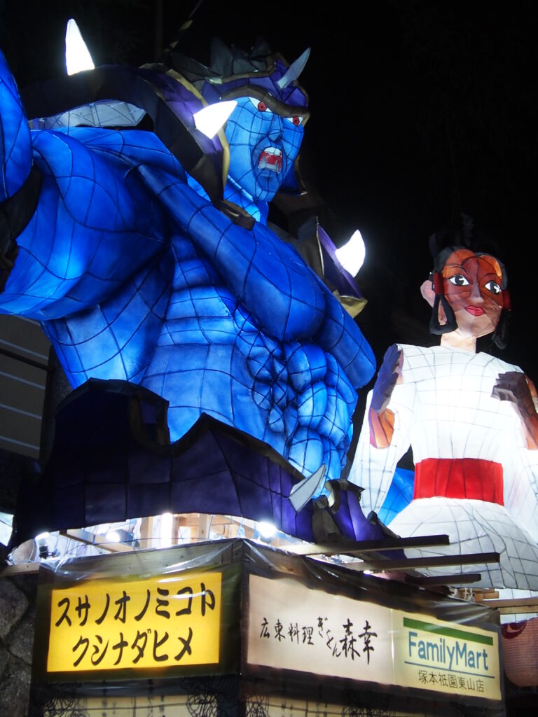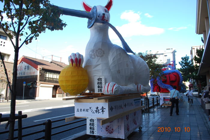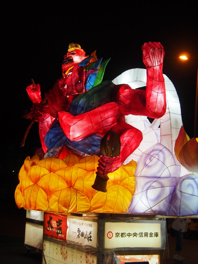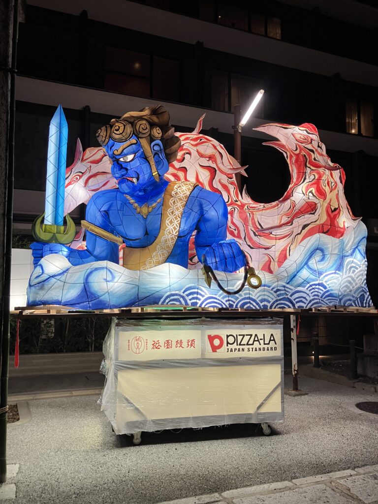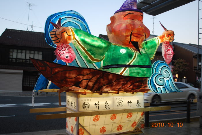 新型コロナウイルス感染症の流行のため、巡行は中止となりました。神楽殿に2基だけ飾りました。